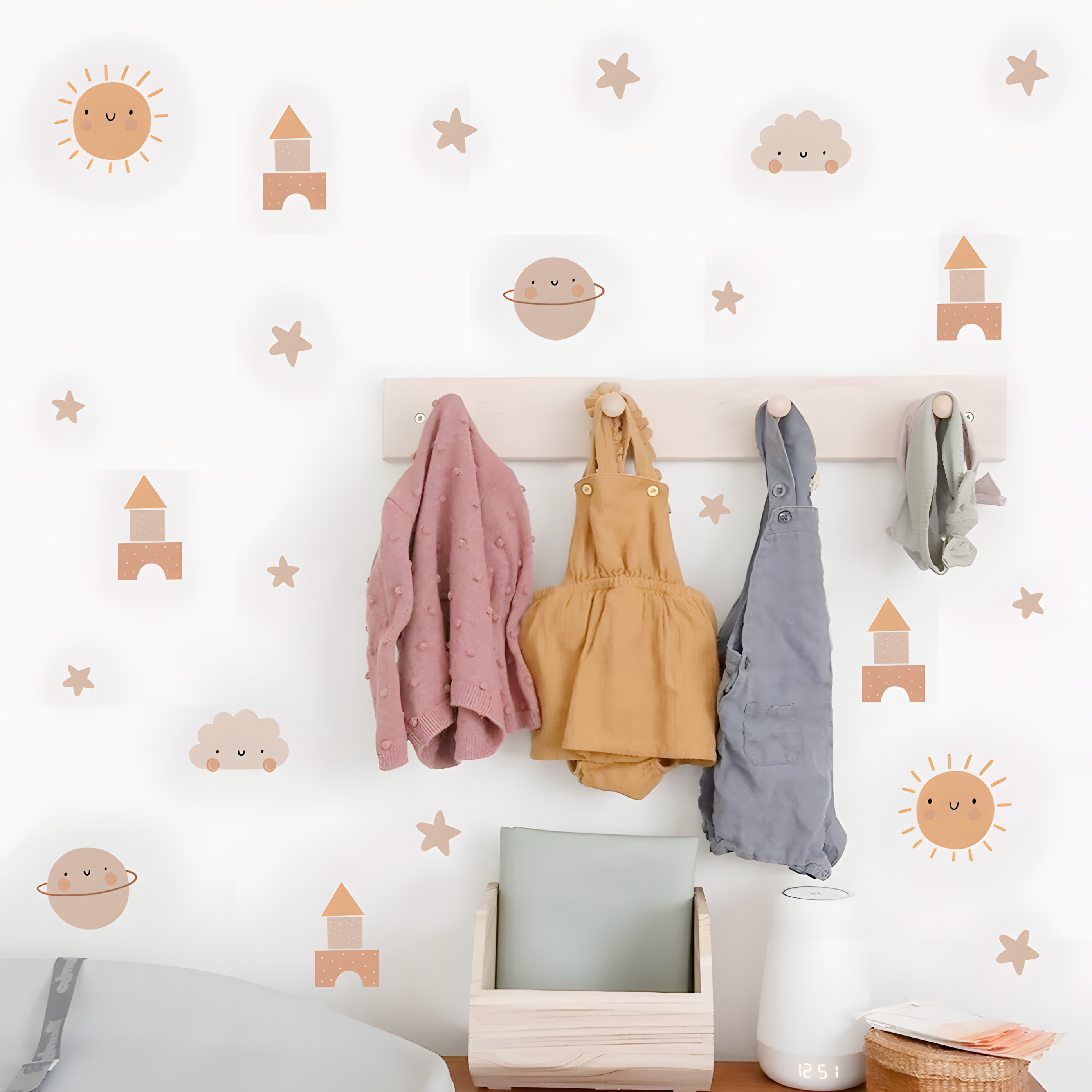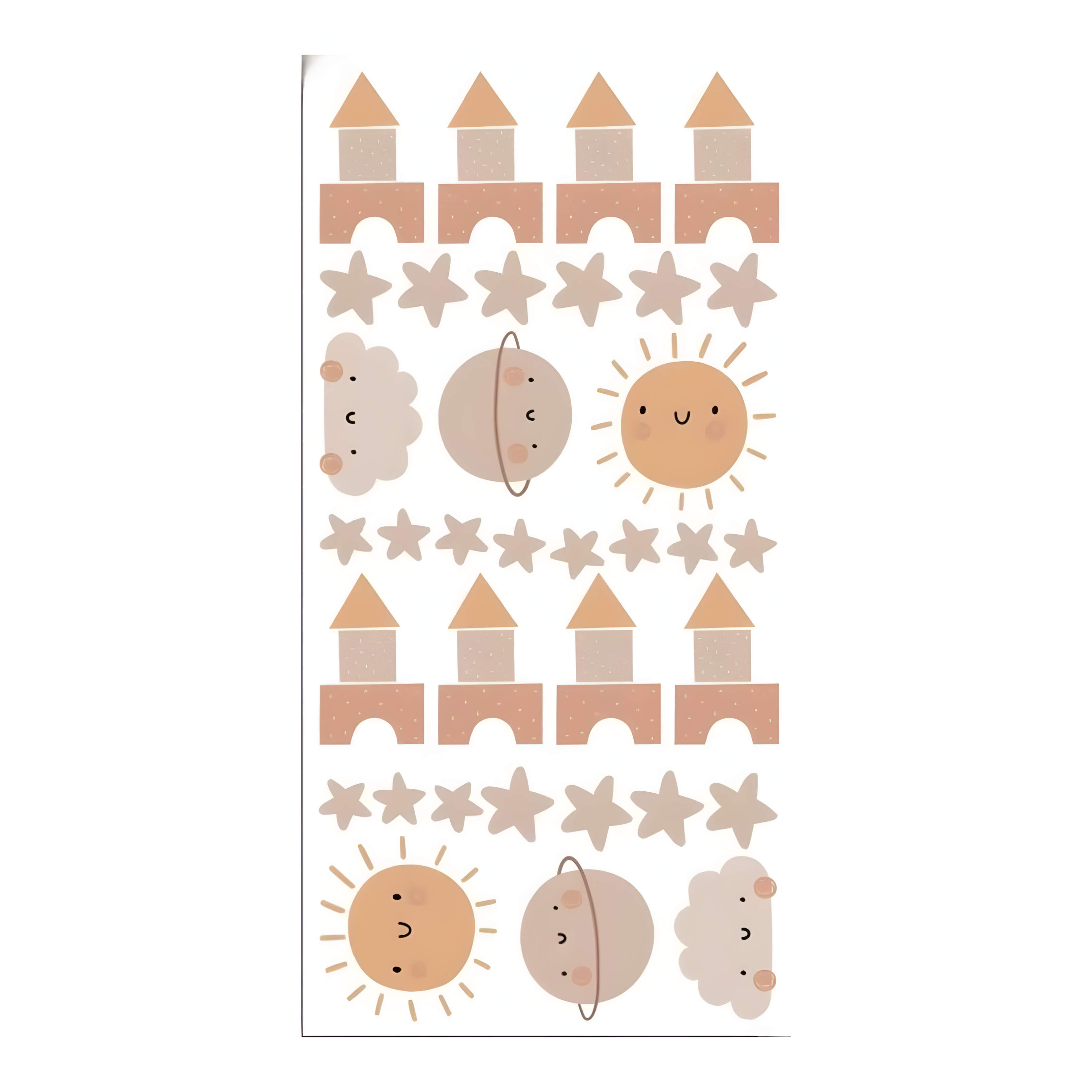 Transform your space with CozyCharm Stickers, a delightful blend of playful charm and modern minimalism. Featuring a mix of whimsical illustrations and abstract patterns in warm, earthy tones, these stickers effortlessly enhance any nursery, kids' room, or cozy living space. Whether you're creating a dreamy atmosphere for little ones or adding a touch of boho elegance to your home, CozyCharm Stickers make decorating easy and fun.