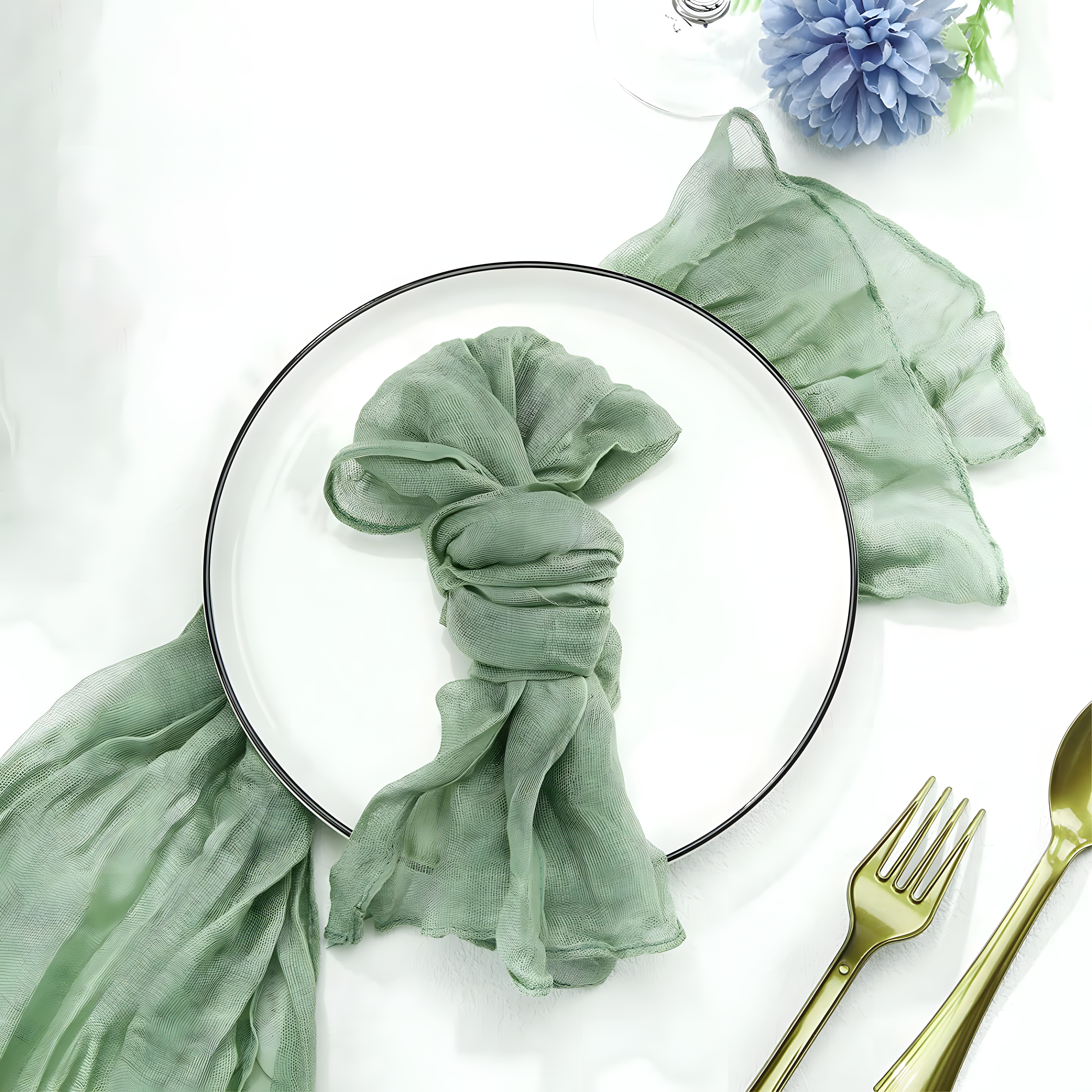 Create a timeless and enchanting table setting with EverSage, a soft, semi-sheer gauze table runner designed to bring a touch of elegance to any occasion. Made from lightweight, flowing cheesecloth, this beautiful sage green runner effortlessly enhances weddings, holiday gatherings, banquets, and special celebrations. Whether draped over a dining table, arch, or cake display, EverSage adds a romantic and vintage-inspired charm to your décor.