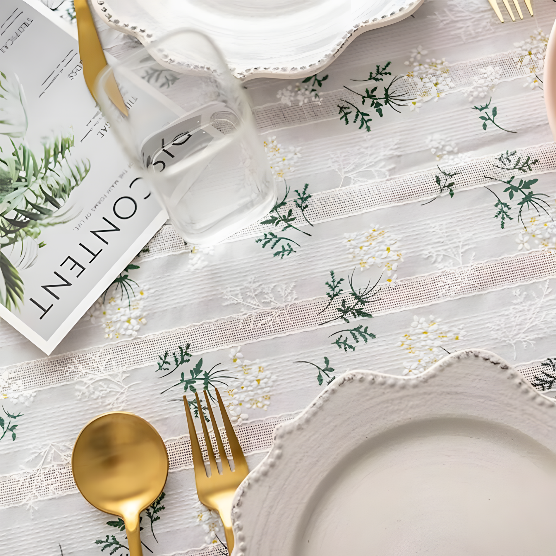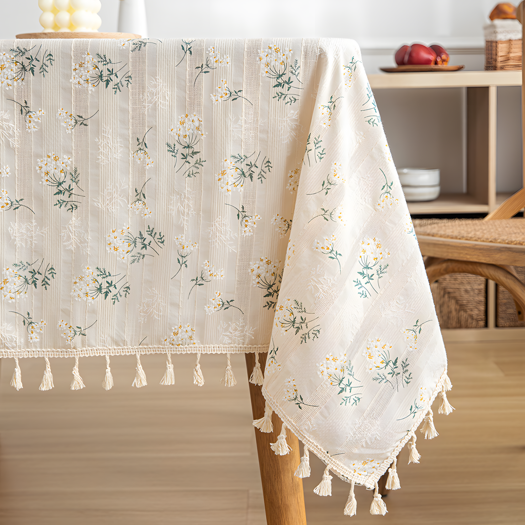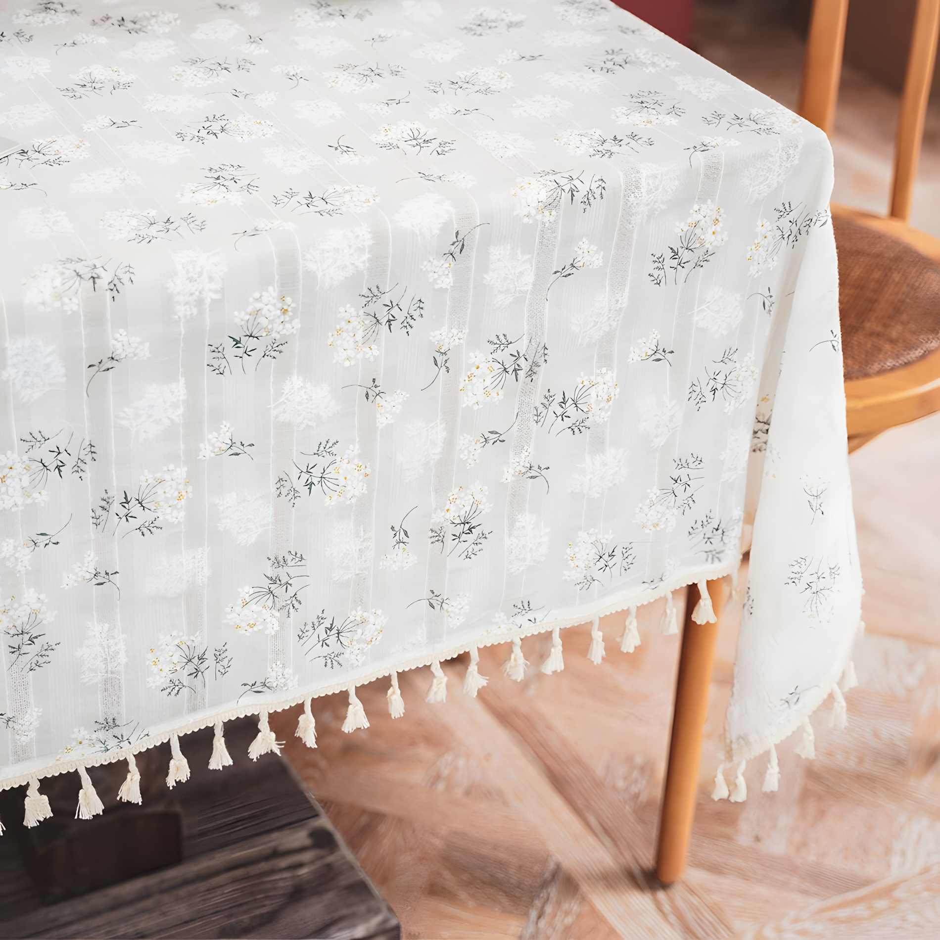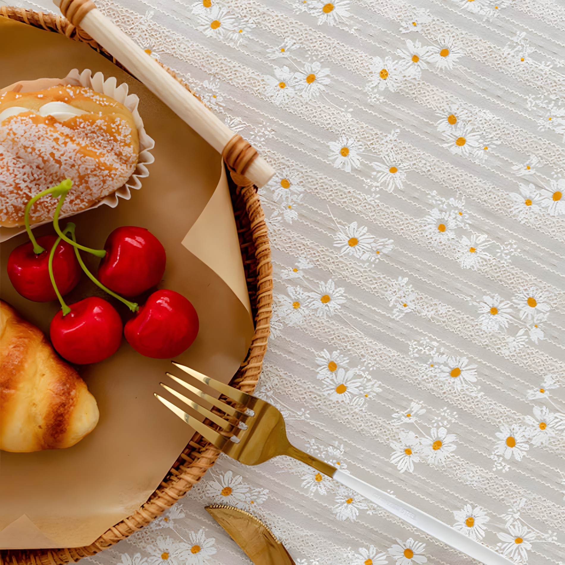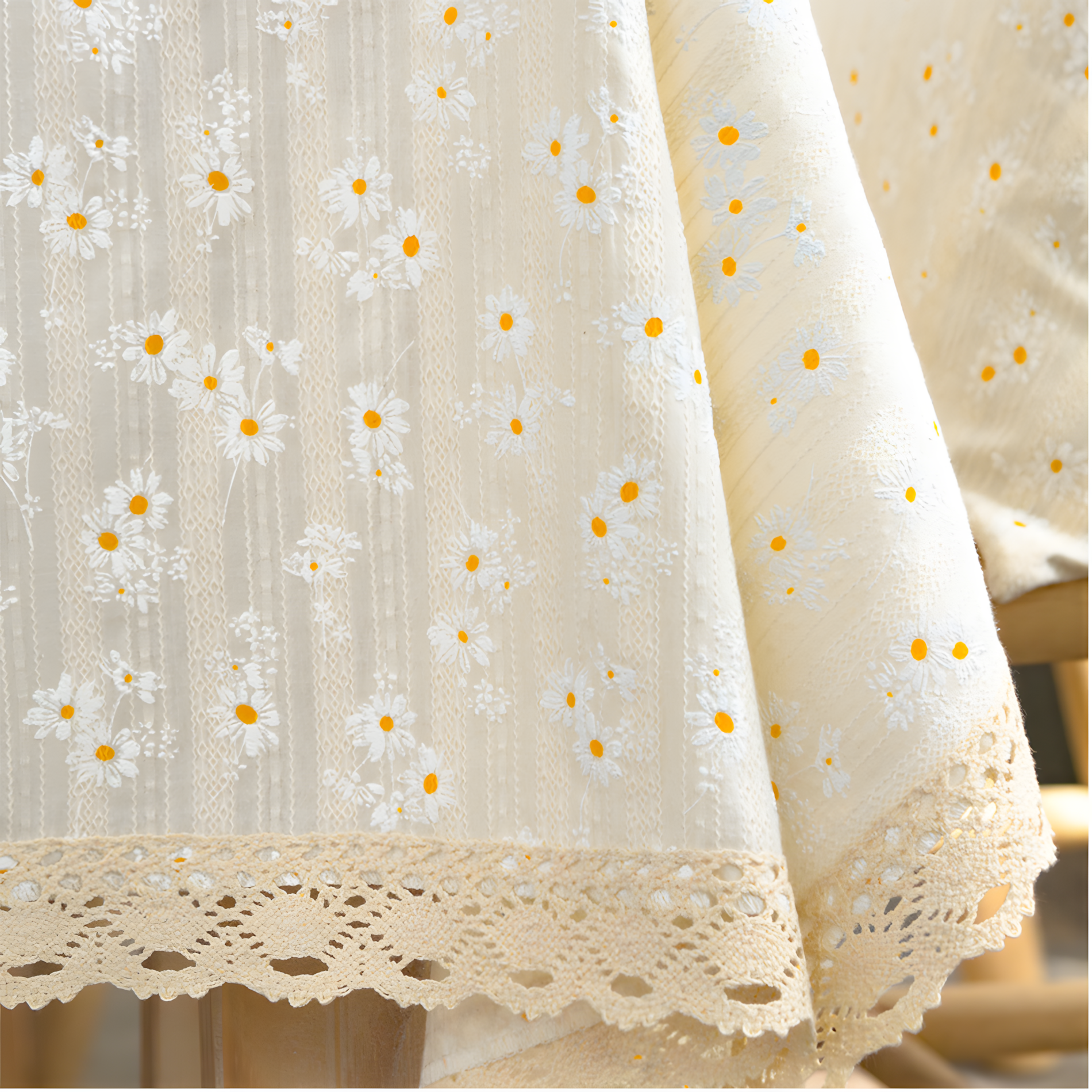FloraGrace – Elegant Daisy Cotton Tablecloth