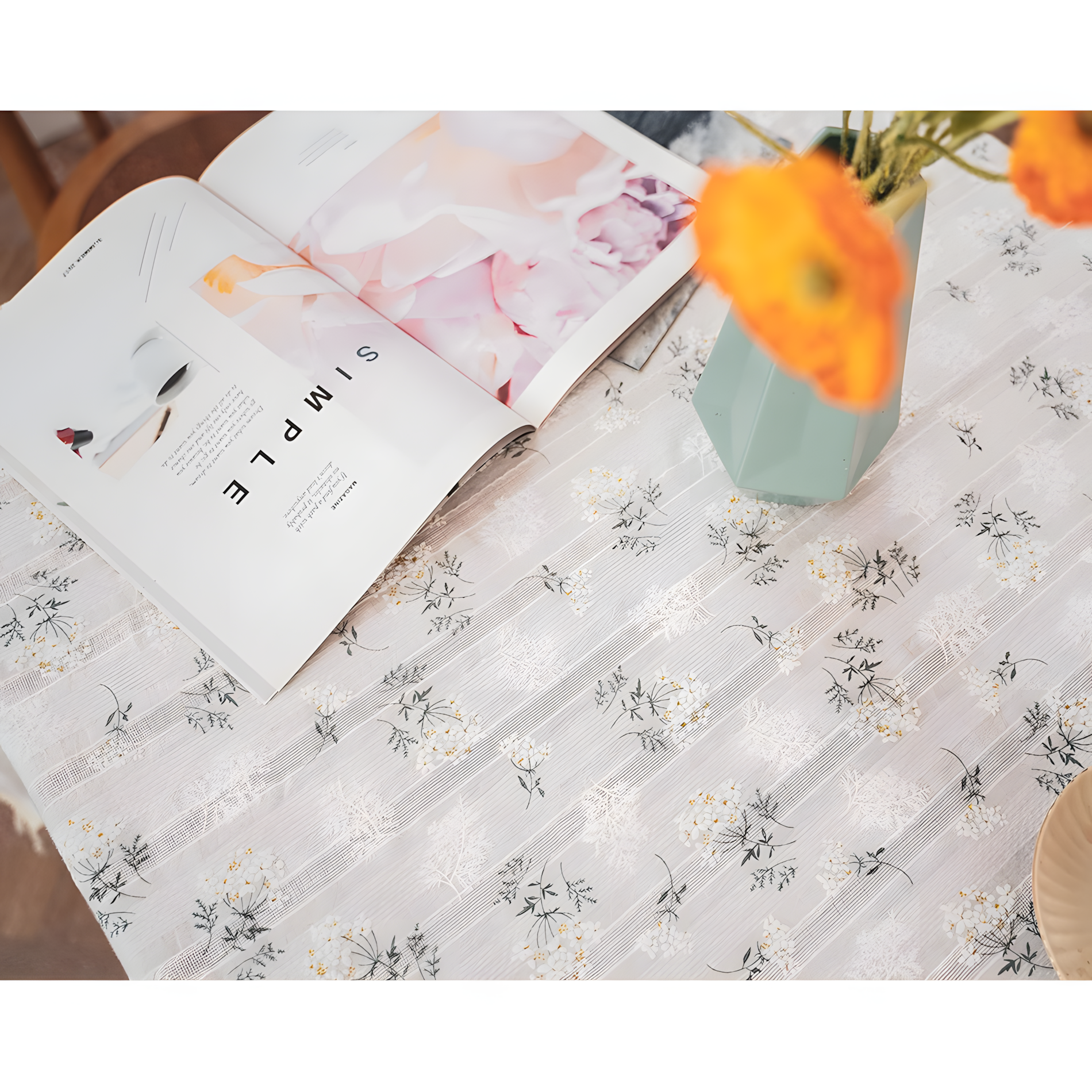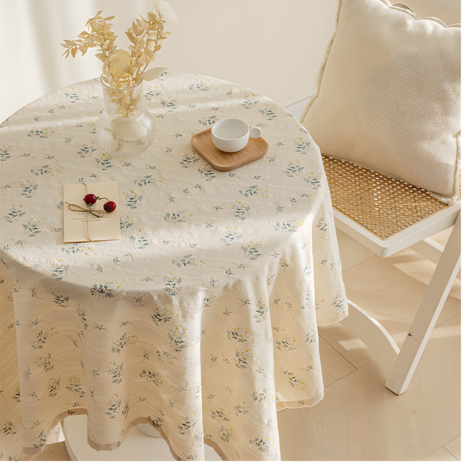 Bring a touch of charm and sophistication to your table with FloraGrace, a beautifully crafted Korean-style cotton tablecloth featuring a delicate small daisy floral pattern. Designed for both everyday dining and special occasions, this soft, breathable fabric adds a cozy and elegant touch to your kitchen, tea table, wedding, or dining room decor. With its timeless floral print and premium cotton texture, FloraGrace blends effortlessly with a variety of interior styles, from modern farmhouse to vintage chic.