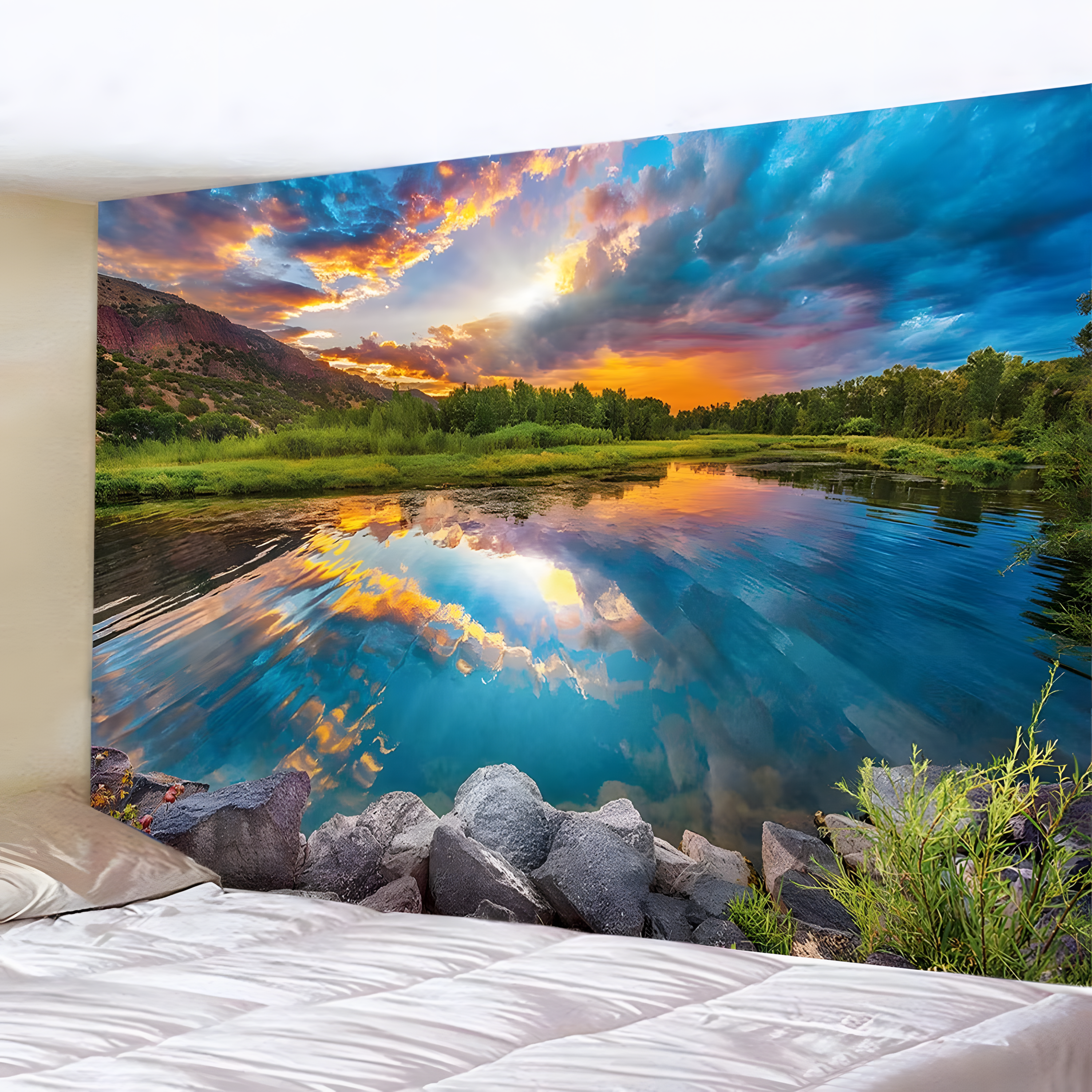 Bask in the tranquil glow of Golden Dusk, a stunning wall hanging that captures the peaceful beauty of the sun melting into still waters. With rich amber skies, soft reflections, and gentle waves, this piece brings the magic of sunset indoors—where time slows, light softens, and the world feels wrapped in warmth. Whether you're drawn to coastal serenity or dreamy twilight hues, Golden Dusk turns any wall into a window to nature’s most golden moment.
