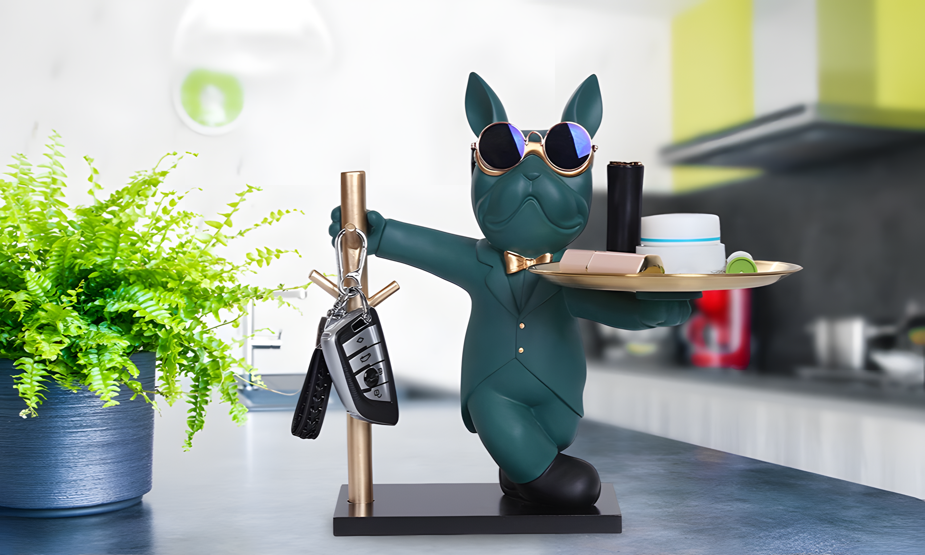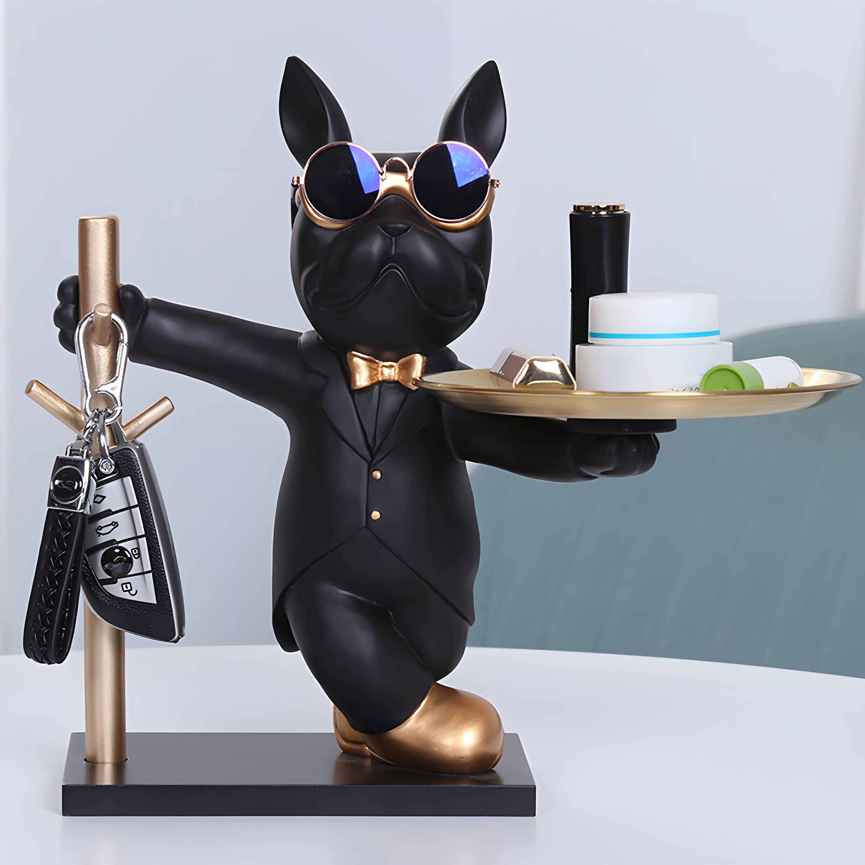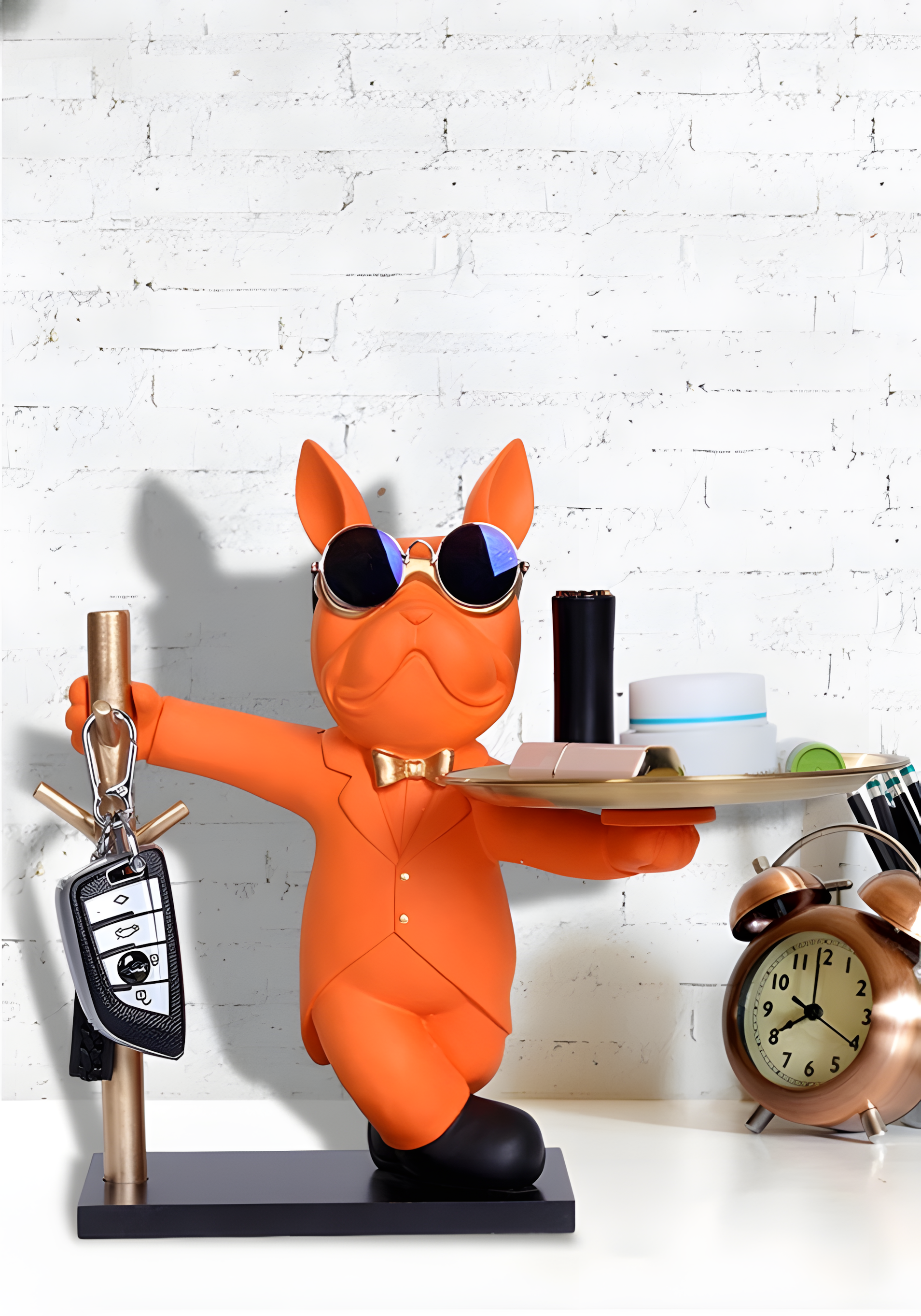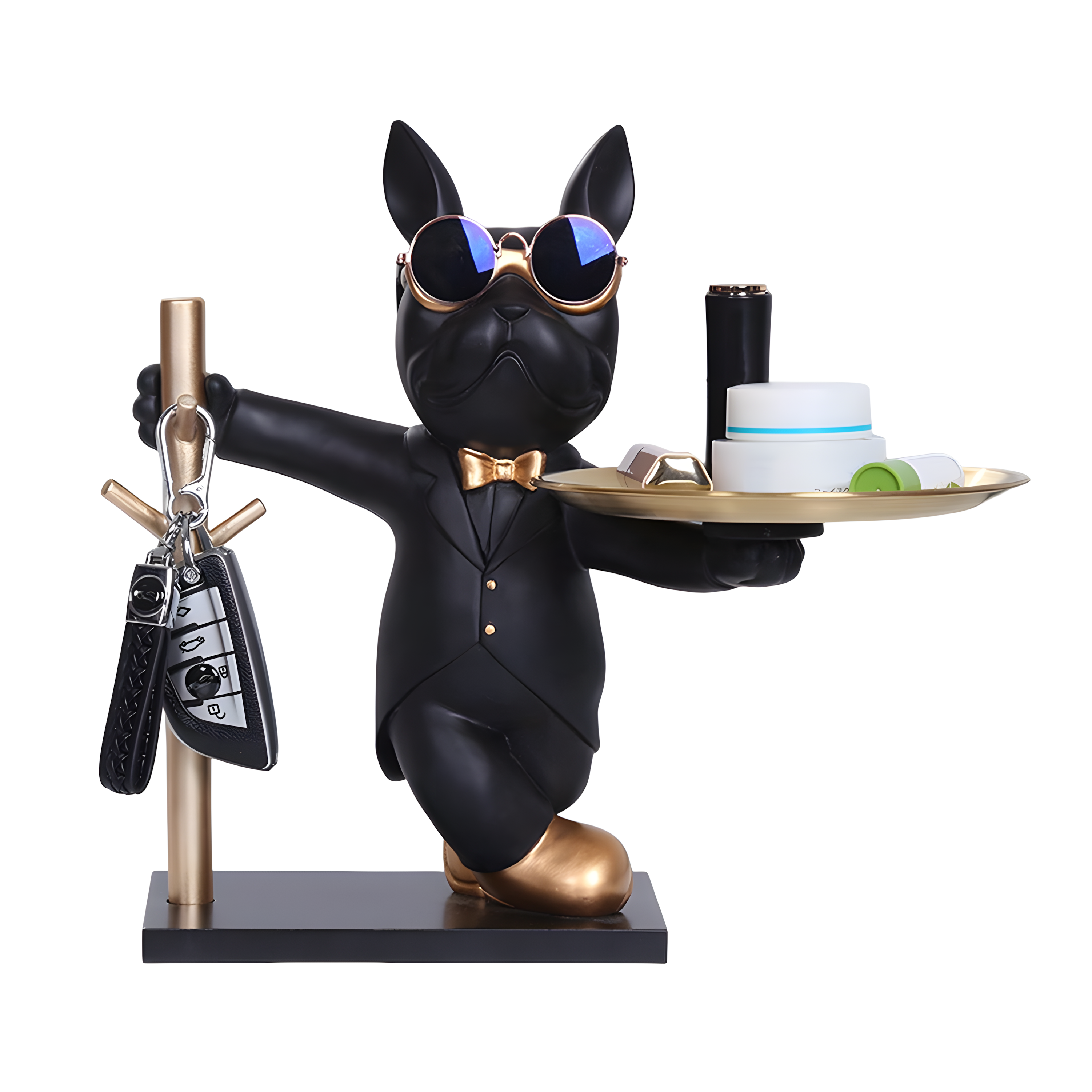 The KeyPup Keeper is more than just a decorative piece—it’s a stylish and functional companion for your entryway. This charming bulldog holds a tray, ready to keep your keys, coins, or small essentials organized while adding a touch of personality to your space. Crafted from high-quality resin, it blends durability with a playful yet sophisticated design.