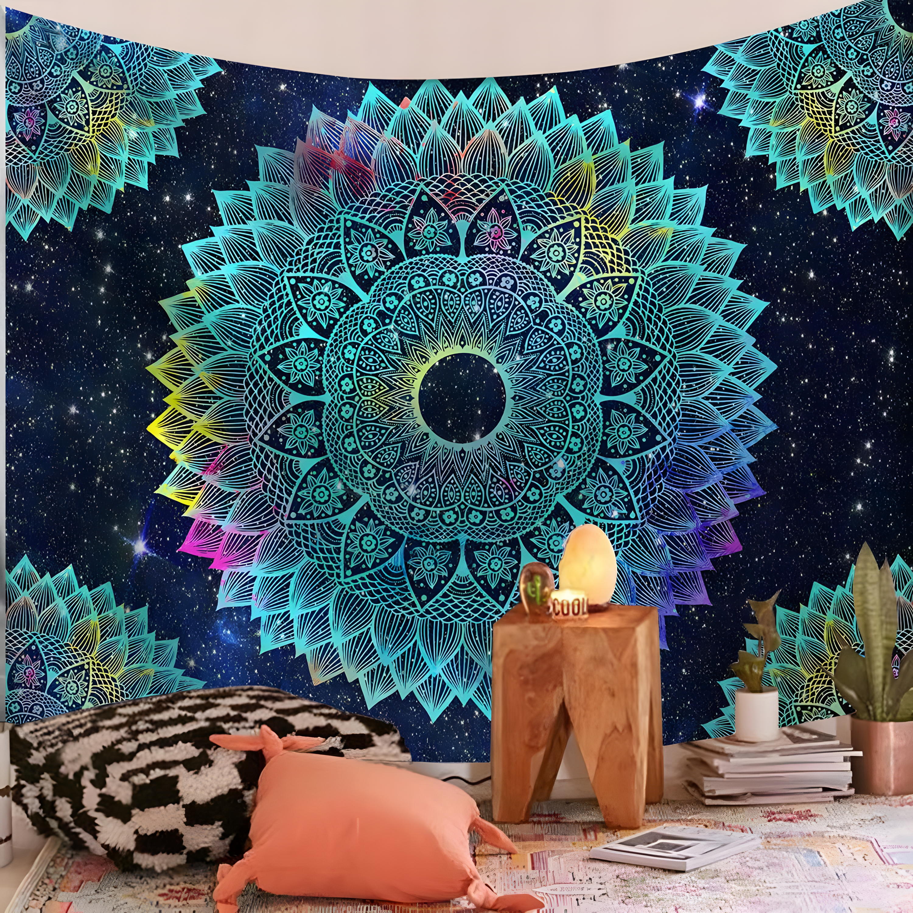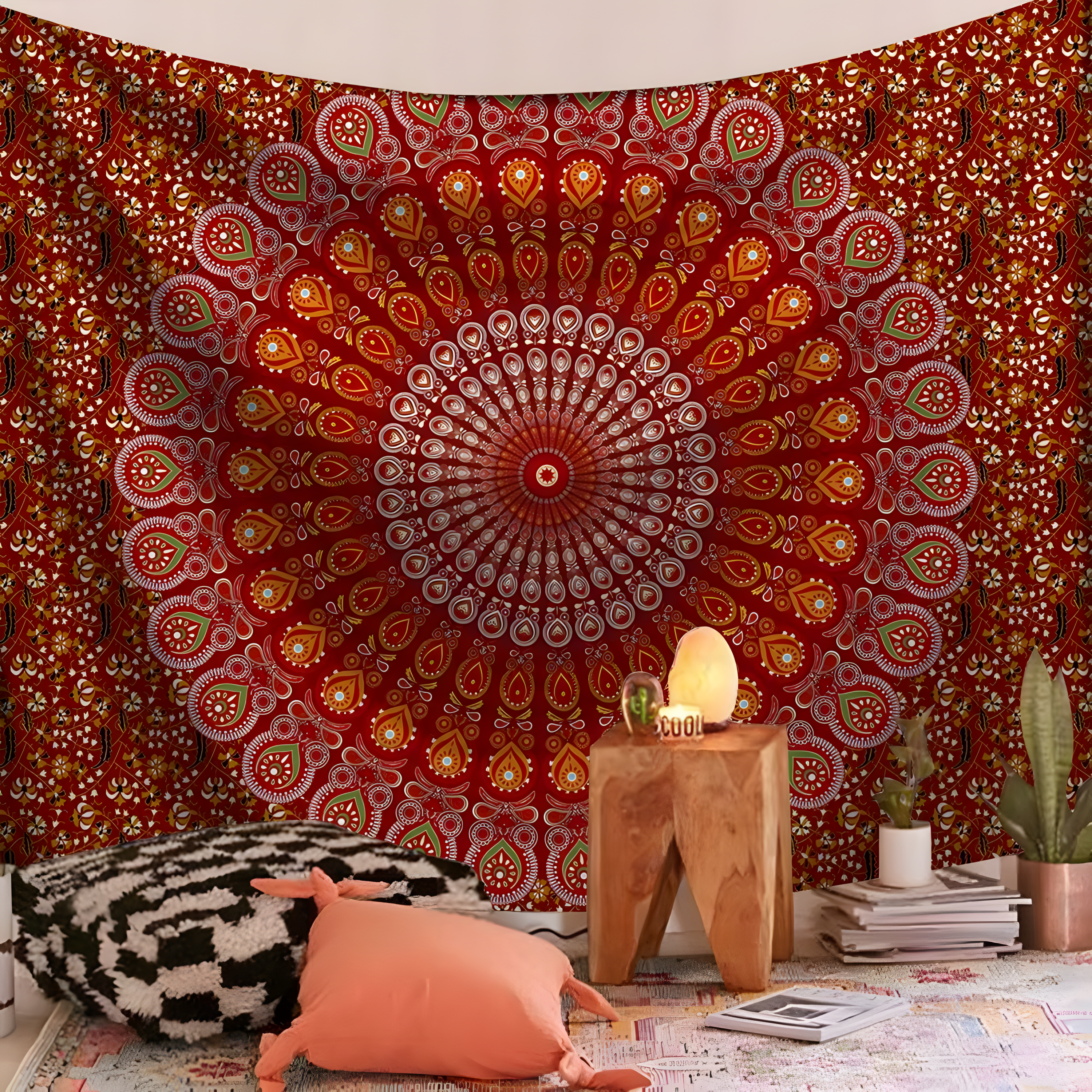Ignite your space with the vibrant energy of MandalaBlaze, a tapestry that radiates passion, balance, and bold beauty. Inspired by traditional Indian mandala art and infused with psychedelic color bursts, this stunning wall textile brings depth, movement, and intention to any room. Whether you're styling a chill corner, creating a meditation zone, or transforming a blank wall, MandalaBlaze becomes the fiery soul of your decor.