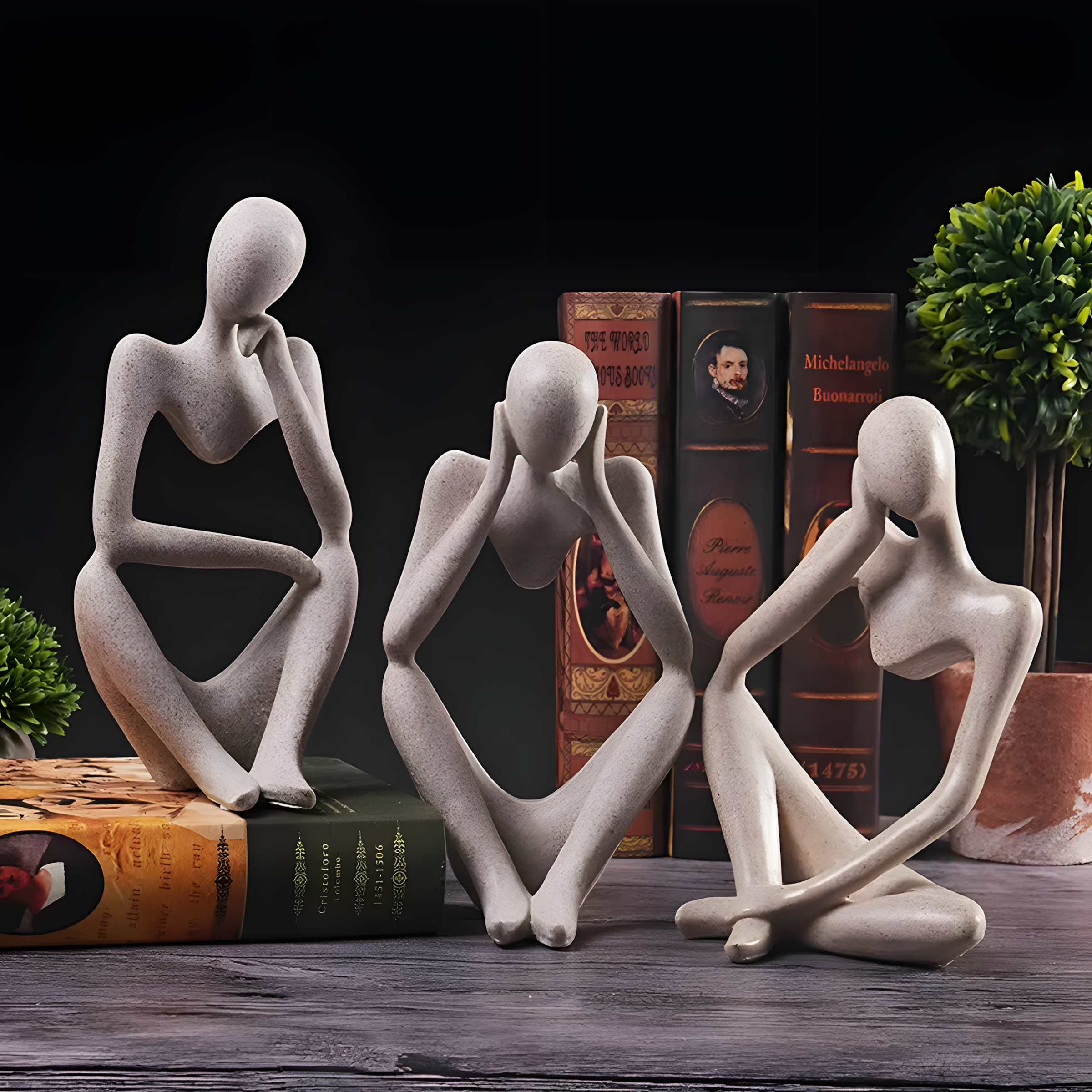 A delicate fusion of art and introspection, Mindful Muses embodies the quiet power of contemplation. Crafted from smooth resin with graceful, abstract lines, each figure captures a moment of deep thought and self-reflection. Whether placed on a shelf, desk, or meditation space, these sculptures serve as a serene reminder to pause, breathe, and embrace the present.