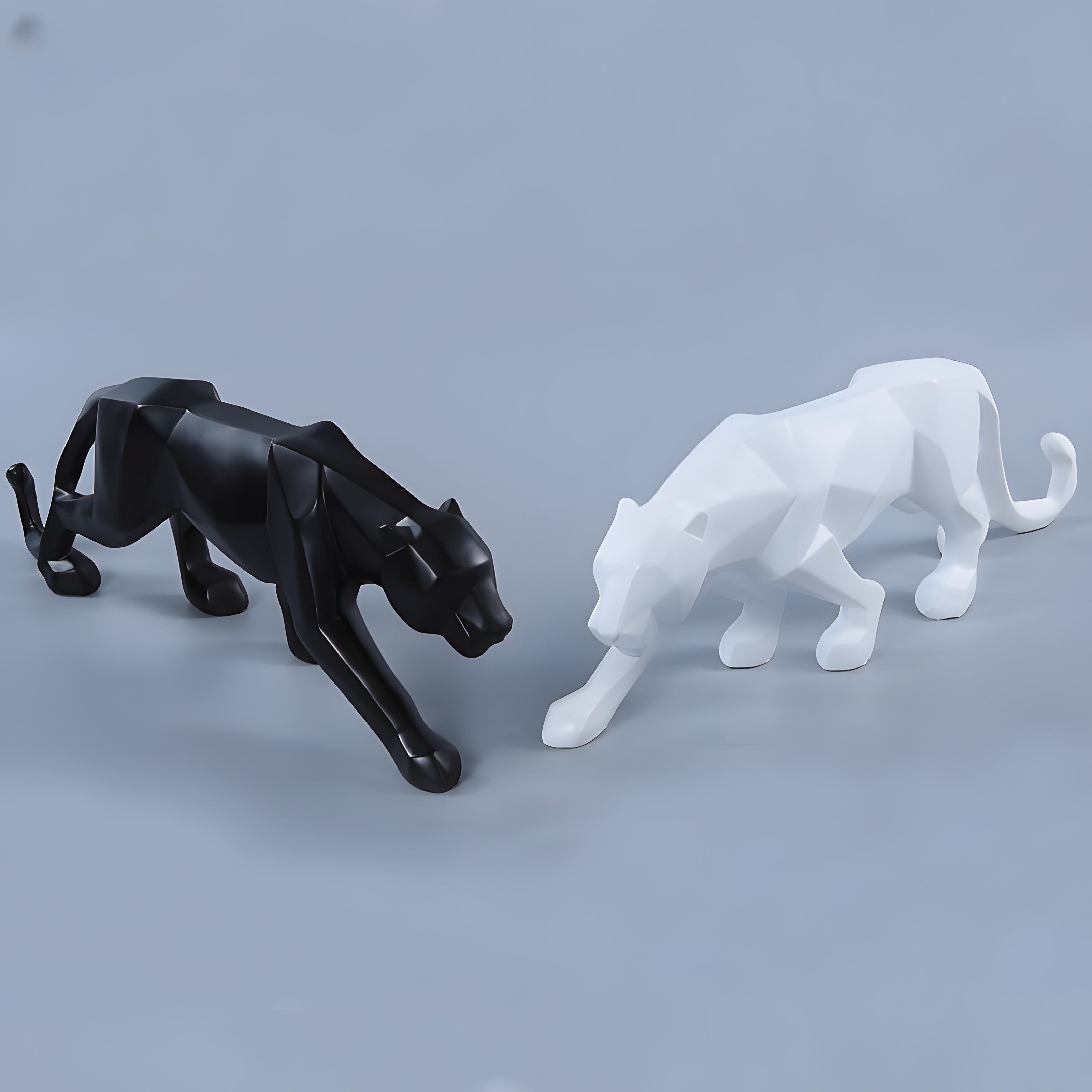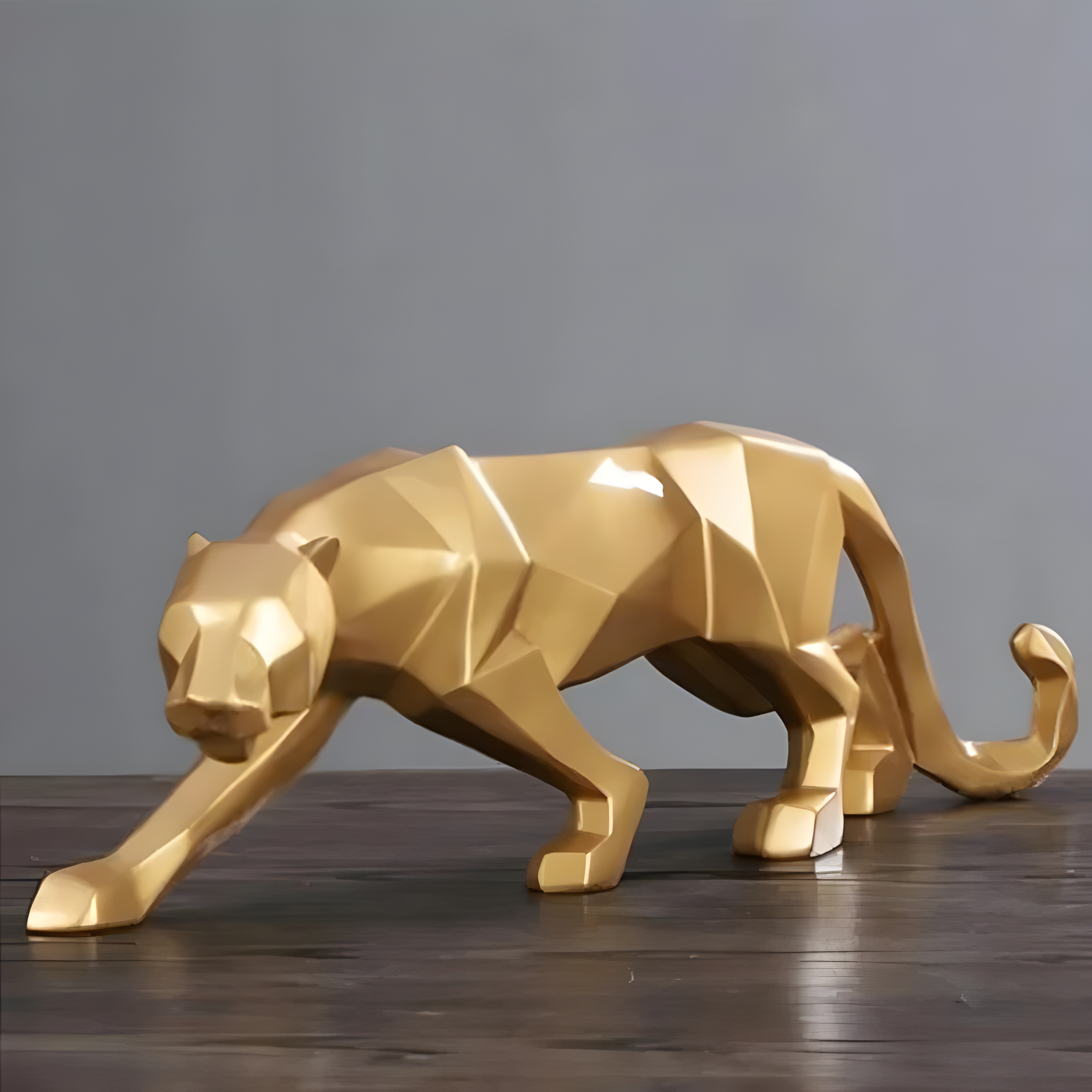 Panther Essence captures the sleek, primal energy of a panther through stunning geometric design. Crafted from high-quality resin, this abstract sculptural piece merges bold, angular shapes with the smooth lines of a panther's form, creating a striking representation of strength and grace. Its sharp angles and minimalist aesthetic make it the perfect statement piece for modern and contemporary interiors, adding a touch of wild elegance to any space.