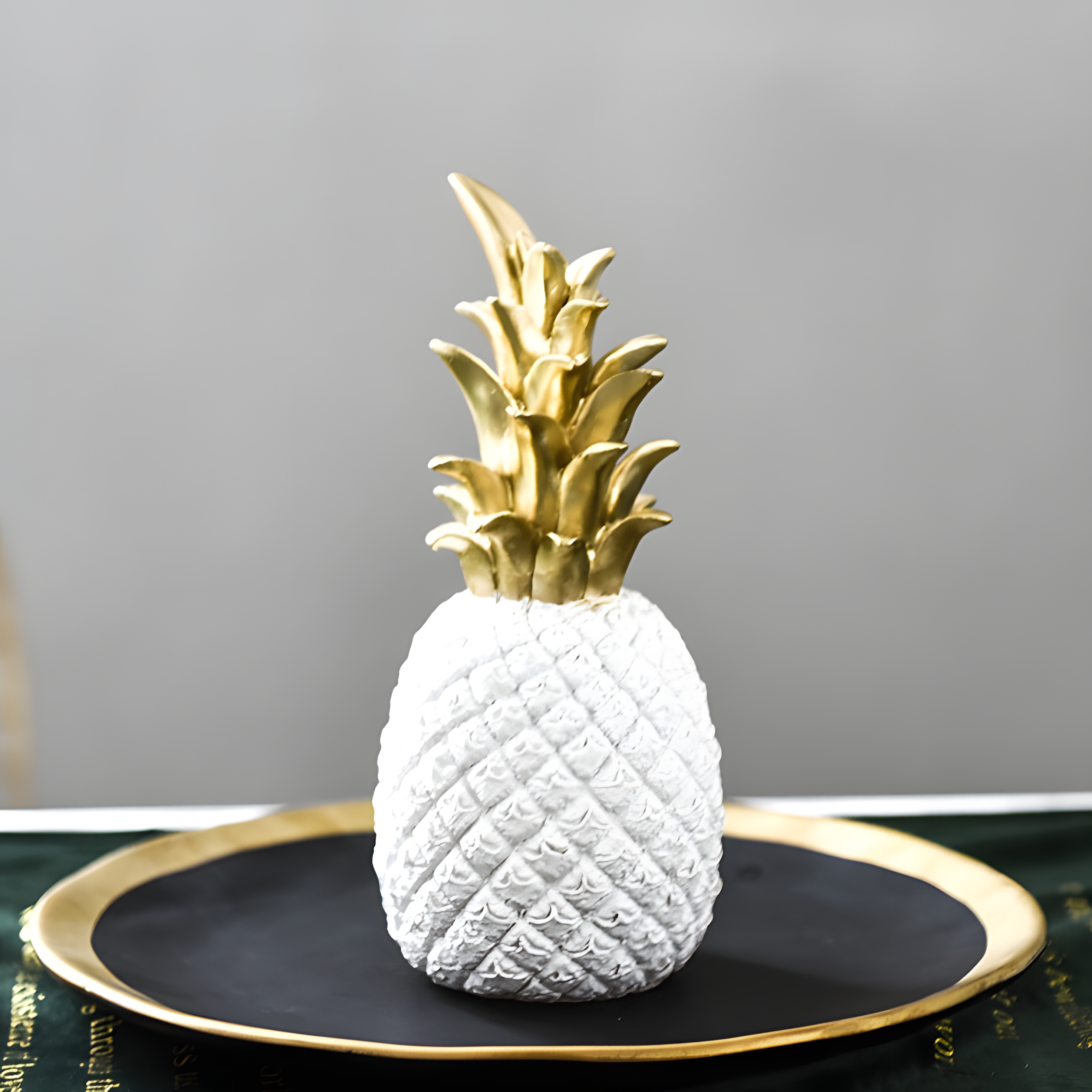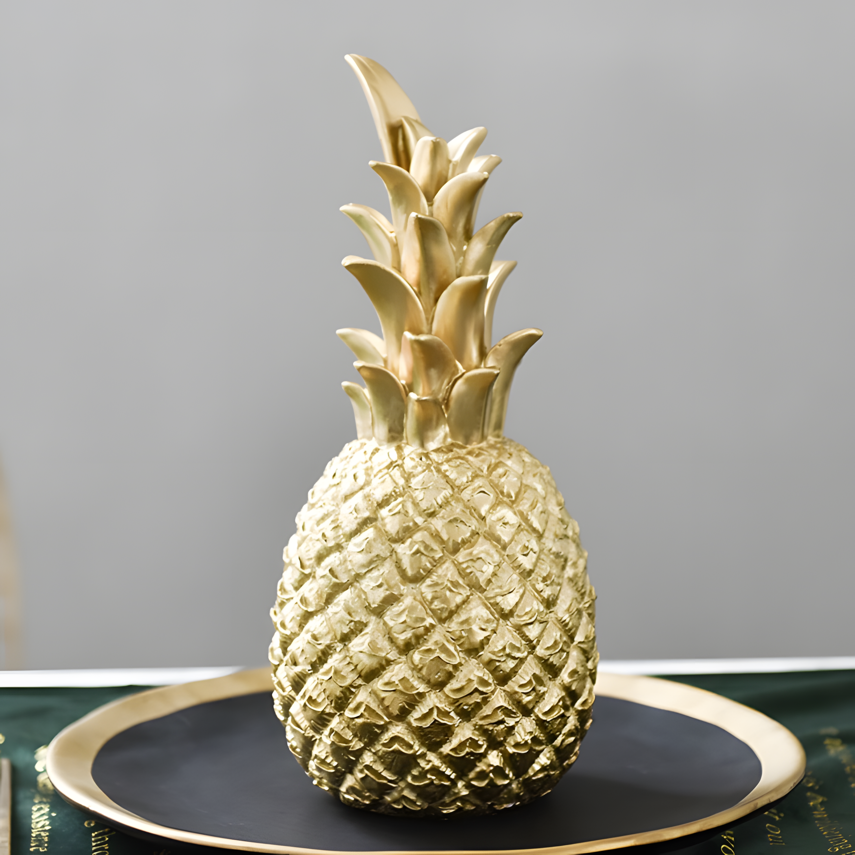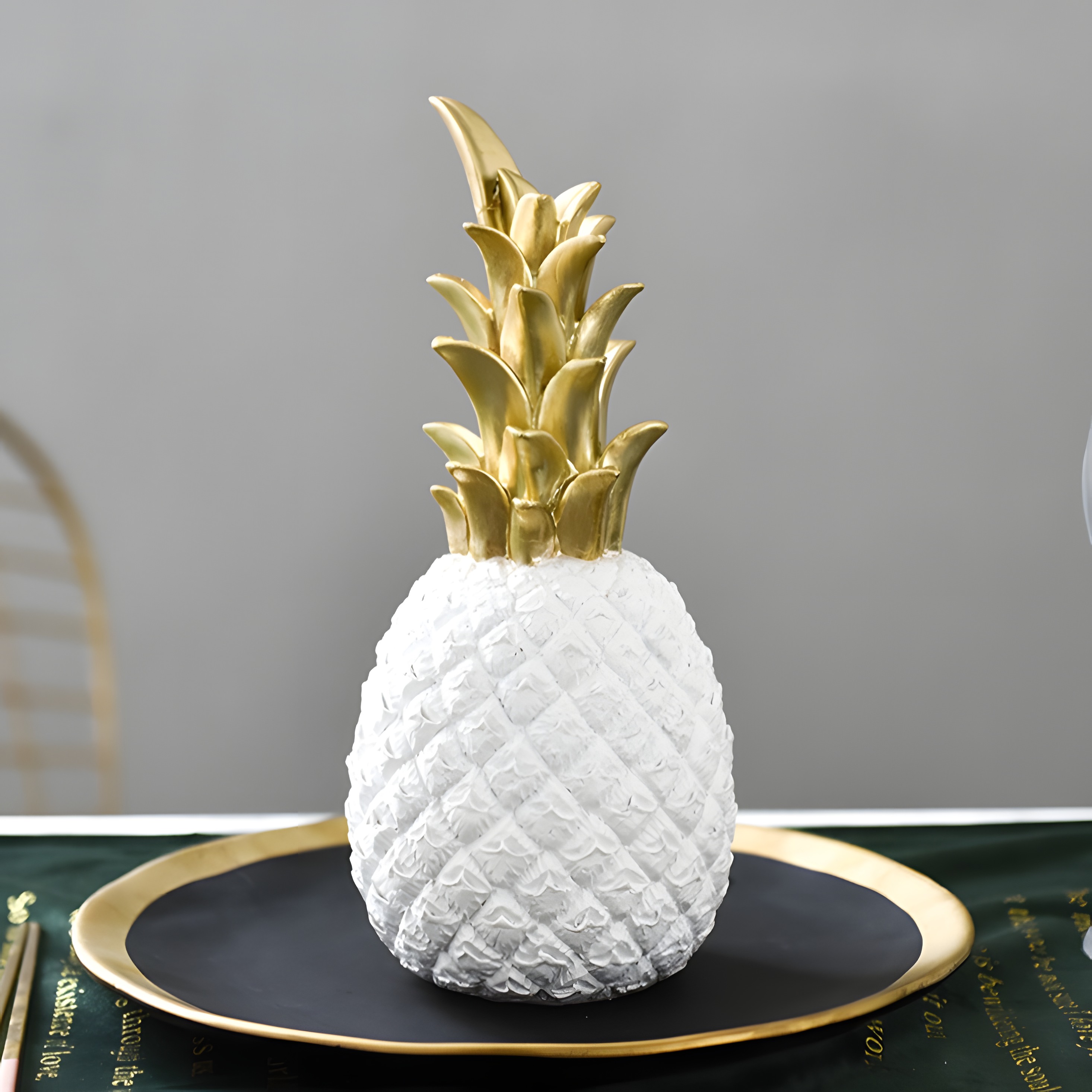 A symbol of warmth, hospitality, and timeless elegance, Pineapple Gleam adds a radiant touch to any space. This beautifully sculpted resin ornament captures the essence of refined decor, blending modern aesthetics with a hint of tropical charm. With its sleek form and gleaming finish, it transforms any tabletop, shelf, or entryway into a statement of sophistication.