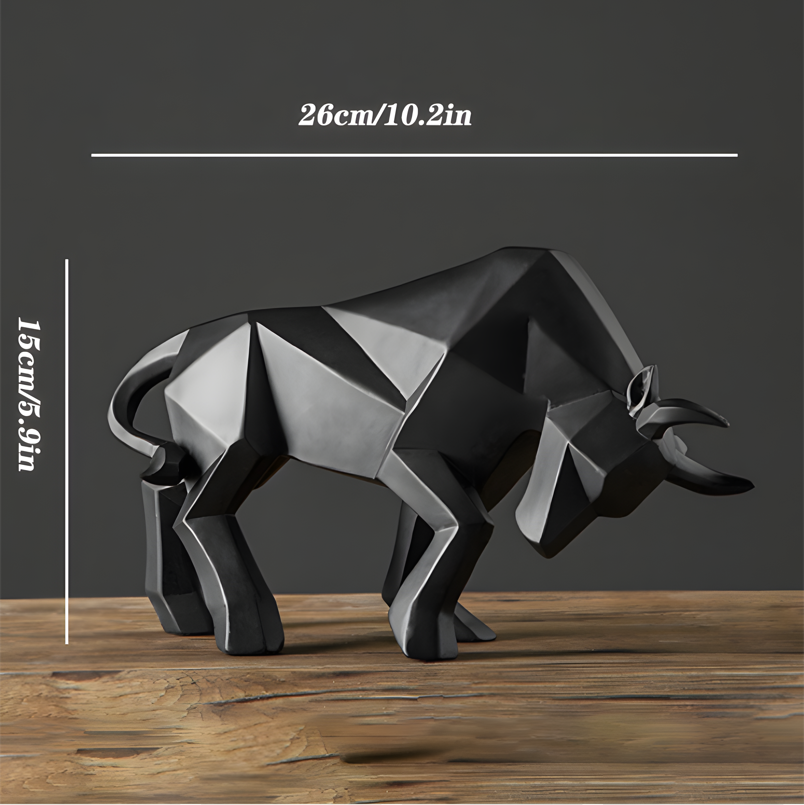 PowerCharge Bull is a captivating and modern resin ornament that brings together the raw power of a bull with the bold elegance of geometric design. With its sharp lines and angular shapes, this geometric bull sculpture represents resilience, strength, and ambition. Its sleek and dynamic form captures the essence of determination and success, while the unpolished finish adds an organic, unfinished touch to the design. Perfect for contemporary, minimalist spaces, this piece will inspire a sense of power and drive wherever it is displayed.
