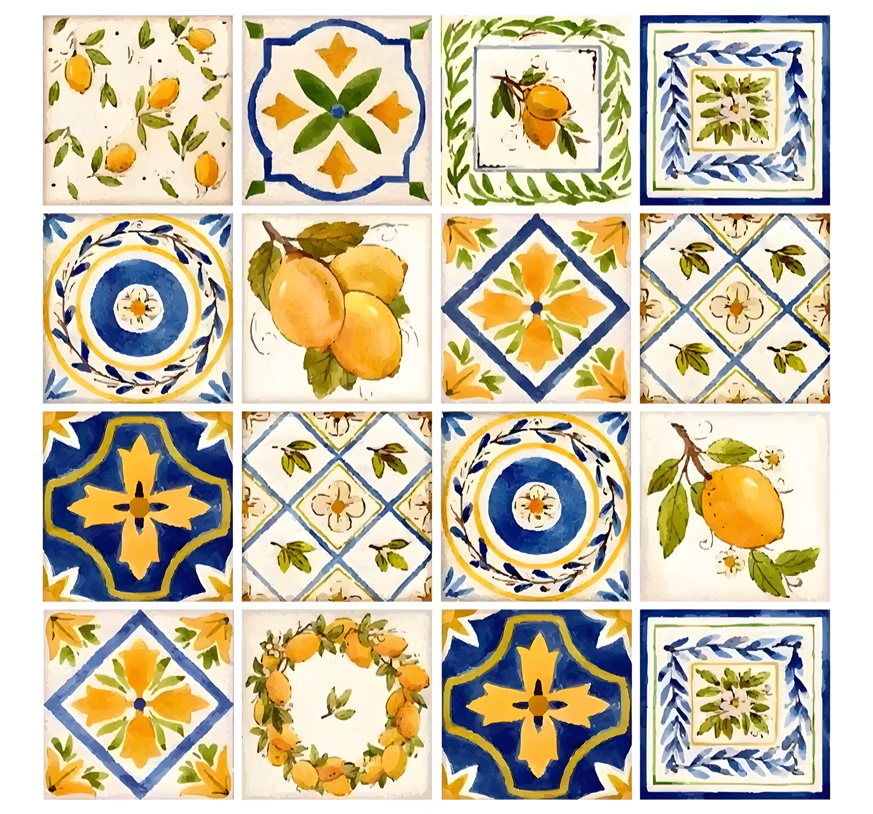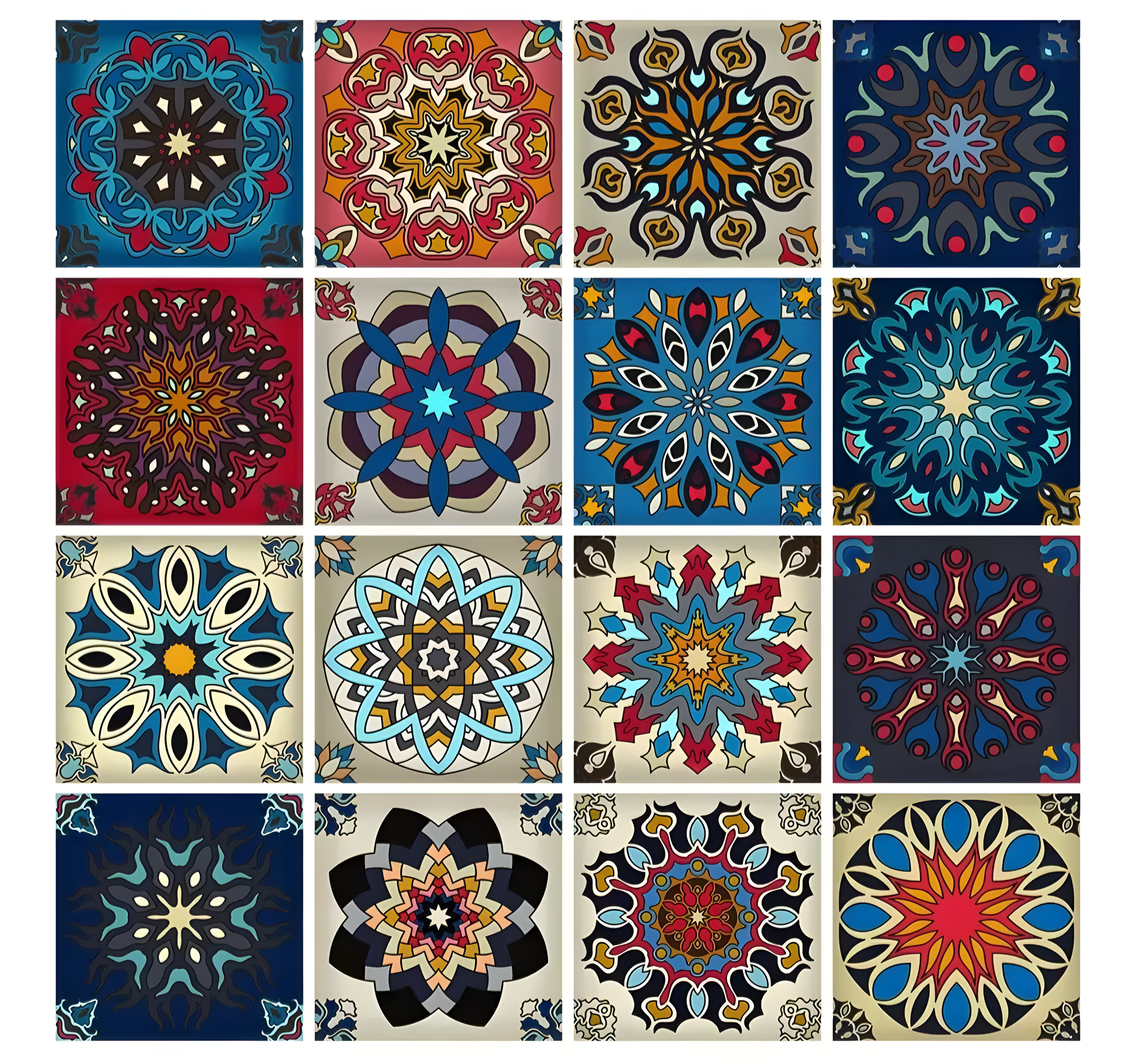 - 16-Piece Set – Covers a generous surface area with stylish designs.