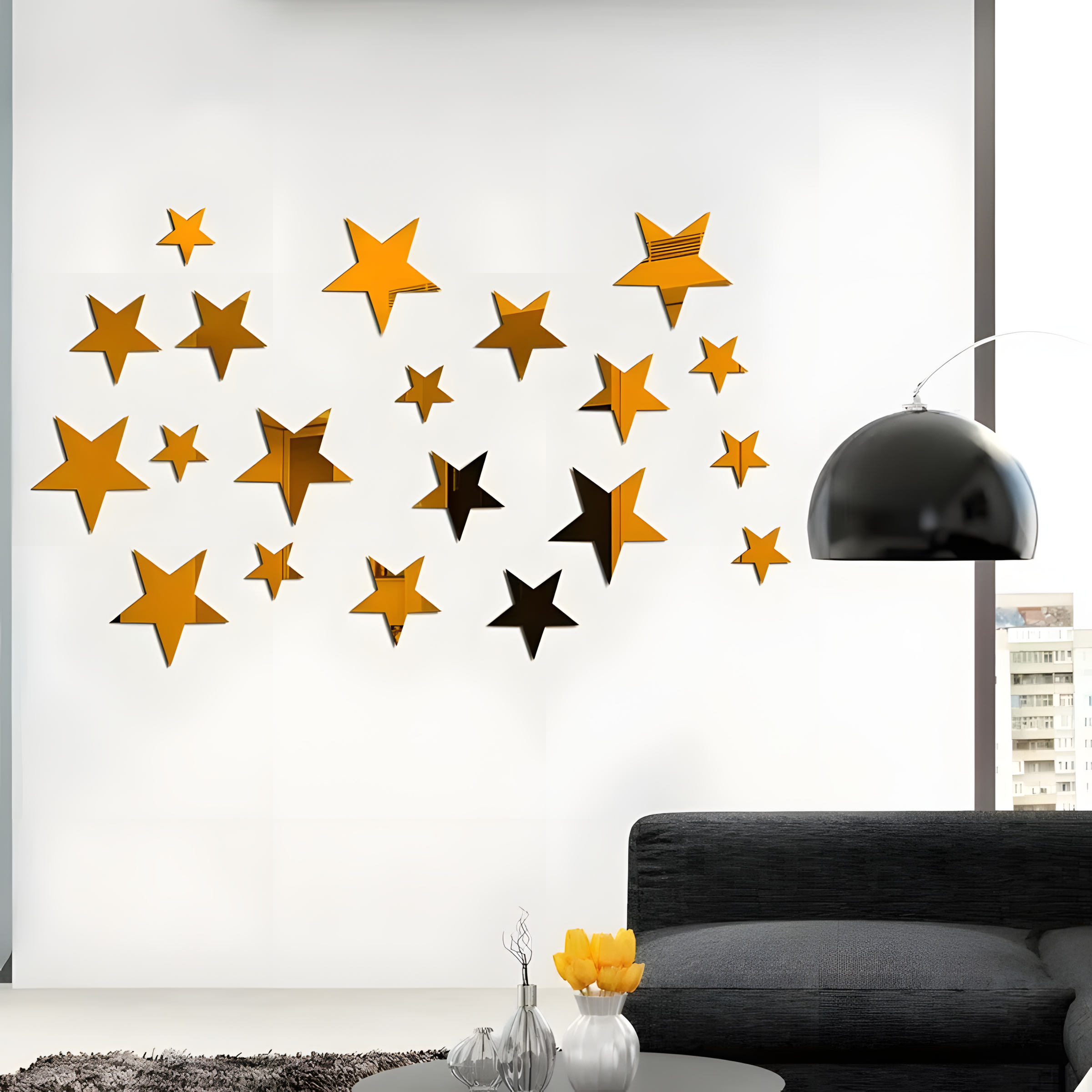 TwinkleMirror Stars – 20-Piece 3D Acrylic Star Wall Stickers
