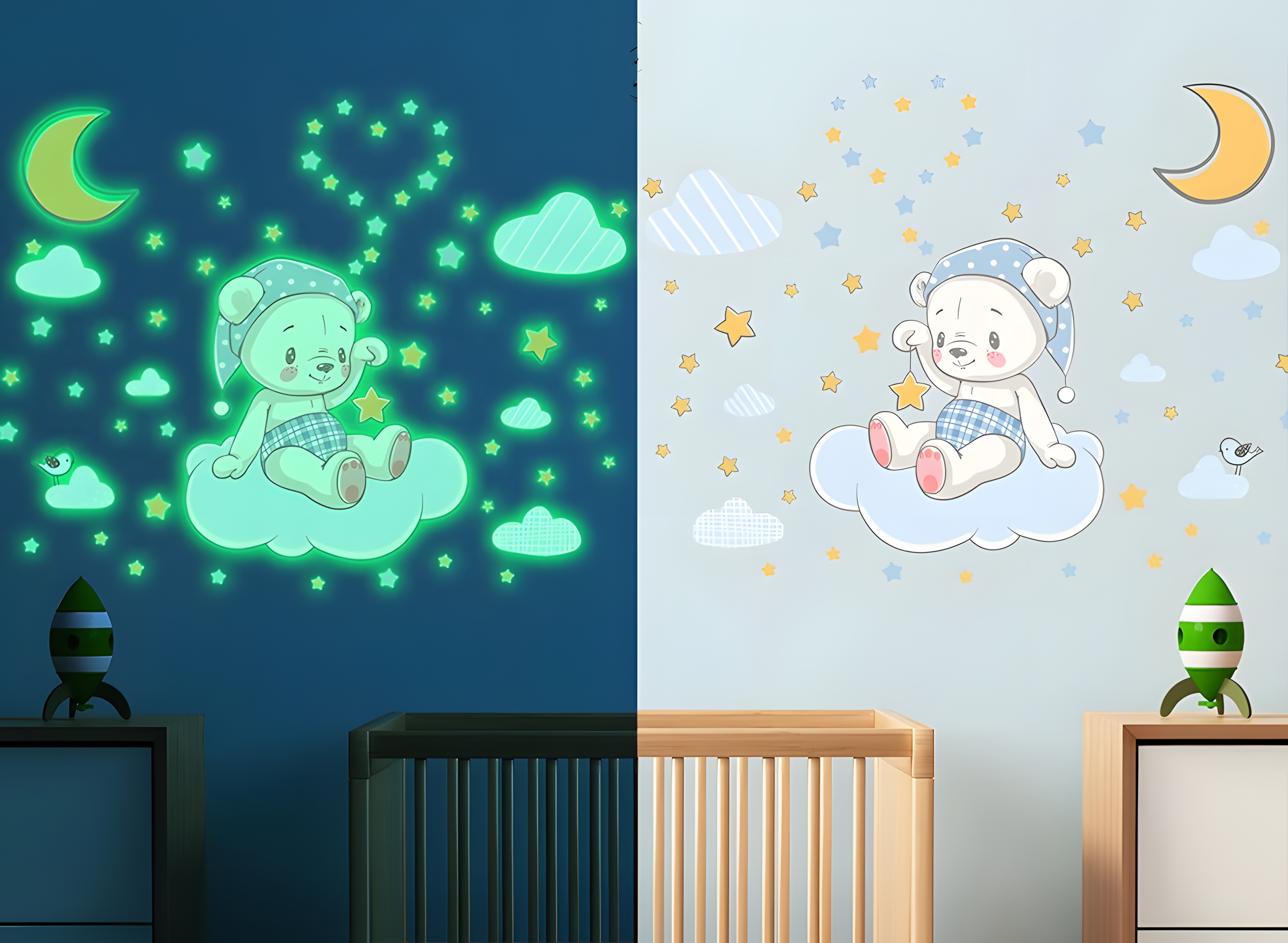 - Glow-in-the-dark cartoon wall stickers